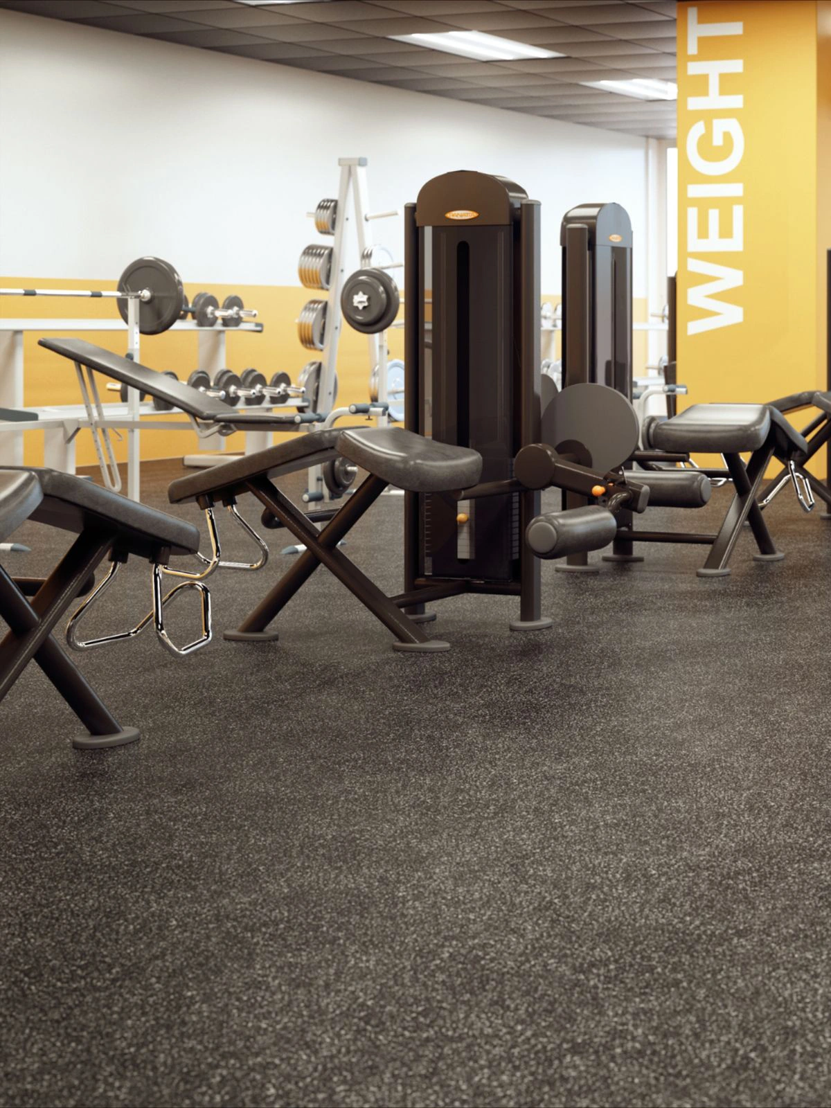 To offer sufficient padding and safeguard the surface and the equipment, gym flooring must be a minimum of 10mm (about 3/8 inch) thick.